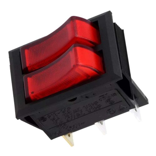 Billenő kapcsoló, szögletes, dupla, piros világítás, 2 körös, 2 állású, 6 láb