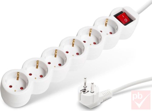 Hálózati elosztós hosszabbító, fehér, 6 aljzat, kapcsolós 5.0m (1.5mm²)