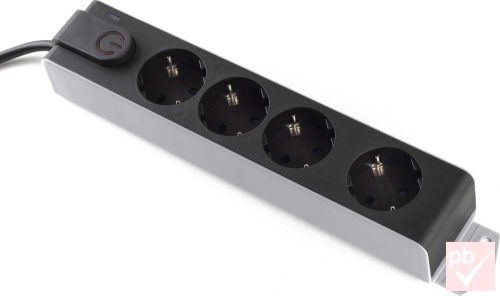 Hálózati elosztós hosszabbító, fekete, 4 aljzat, kapcsoló, túlfeszültség védelem, 1.5m