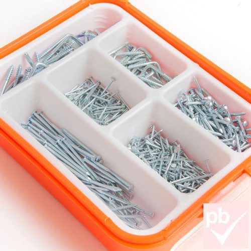 Minden háztartásban szükség van általános barkács termékekre. A szög bármely rögzítési feladat alapkelléke. Használhatja faanyagok egymáshoz illesztéséhez, de kiváló lehet fali képek, óra felfogatására is. Utóbbi feladatokhoz használhatja a szettben található akasztókampókat is. Az átlátszó tetővel rendelkező doboz kiváló áttekinthetőséget biztosít.