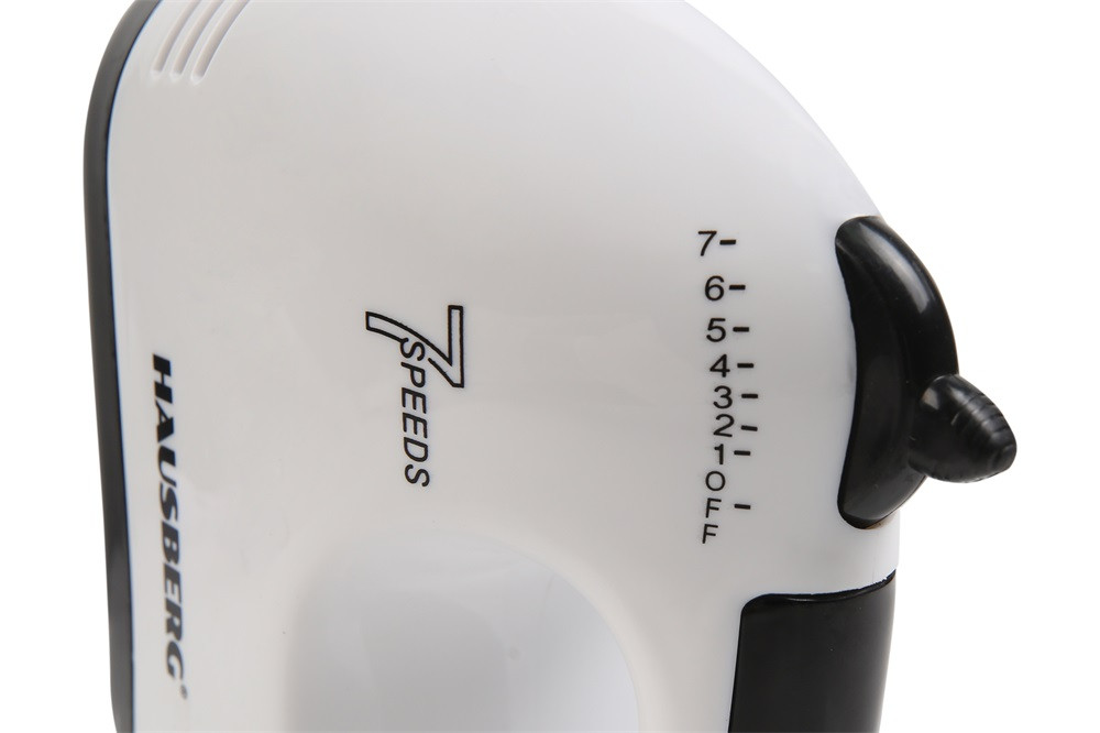 Kézi mixer, Hausberg HB-4112RS, fehér/fekete, 250 W, 7 sebesség