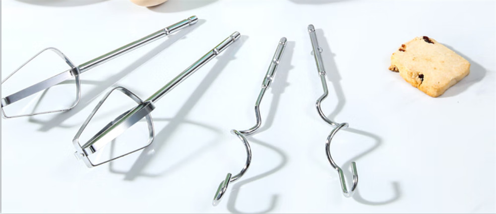 • Fedezze fel, milyen egyszerű bármilyen receptet otthon elkészíteni. A mixerhez egy pár rozsdamentes acél lapát tartozik a tojásfehérjék felveréséhez, a tejszínhabhoz és a hozzávalók összekeveréséhez. Két horog is található a különféle egyszerű tészták dagasztásához.