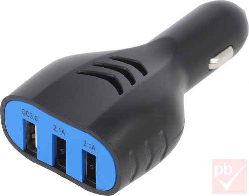 SCI autós USB töltőfej 3db aljzattal, fekete (QC3.0 + 2x 2.1A)