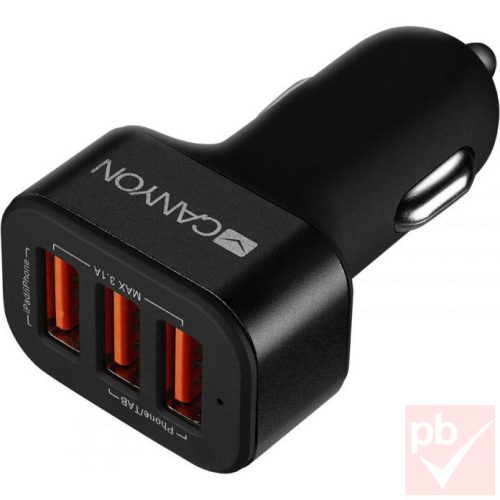 Canyon CNE-CCA06B autós USB töltő 3x aljzattal, fekete (12/24V DC 3.1A)