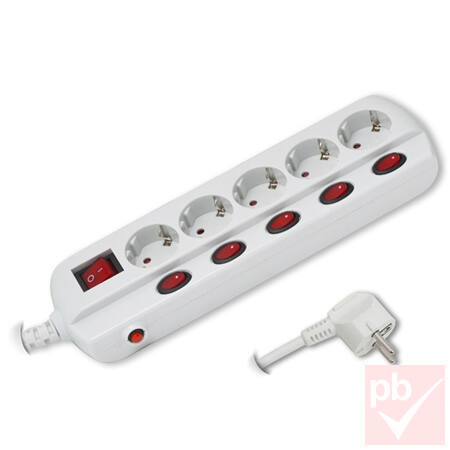 Hálózati elosztós hosszabbító, fehér, 5 külön kapcsolható aljzat + főkapcsoló 1.5m
