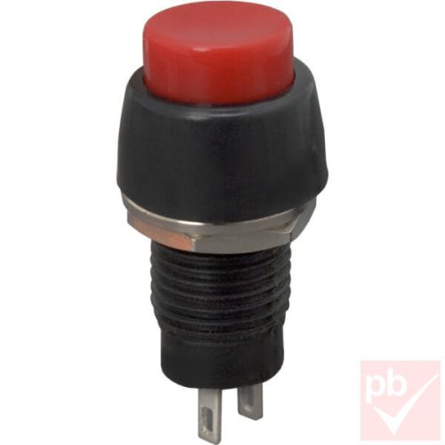 Nyomókapcsoló, 1 körös, 2 állású, 2 láb, kerek, piros, 250V 2A