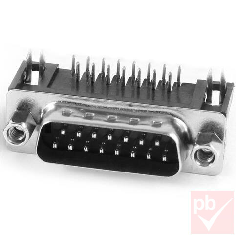 D-SUB csatlakozó, apa, 15 pin, 2 soros, 90°-os, forrasztható, ház nélkül