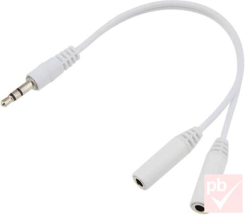 Jack elosztó, 1x 3.5mm sztereó dugó - 2x 3.5mm sztereó aljzat, vezetékkel 0.1m