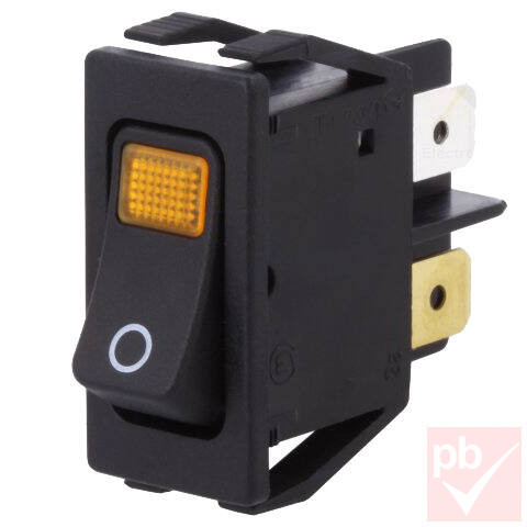 Billenő kapcsoló, szögletes, fekete, sárga vil., 2 körös, 2 állású, 30x15x30mm