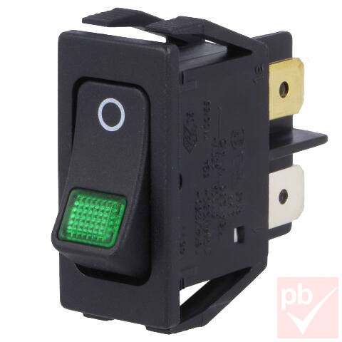 Billenő kapcsoló, szögletes, fekete, zöld vil., 2 körös, 2 állású, 30x15x30mm