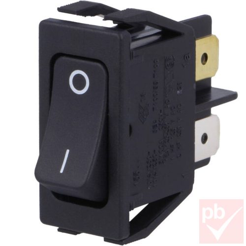 Billenő kapcsoló, szögletes, fekete, világítás nélkül, 2 körös, 2 állású, 28x12