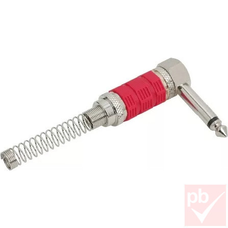 Jack dugó, 6.3mm mono, fém ház, erősített kivitel, rugós törésgátlóval, 90°