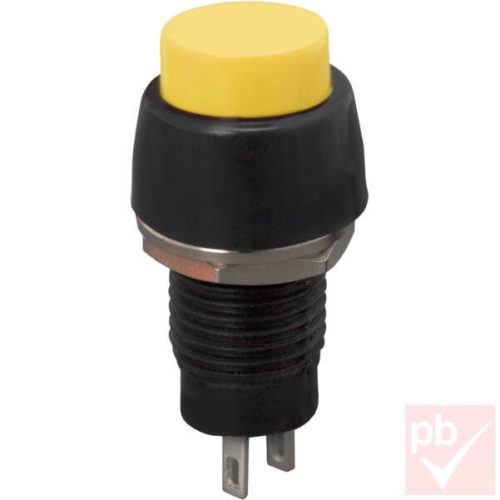 Nyomógomb, kerek, 1 körös, 2 láb, sárga, 250V 2A
