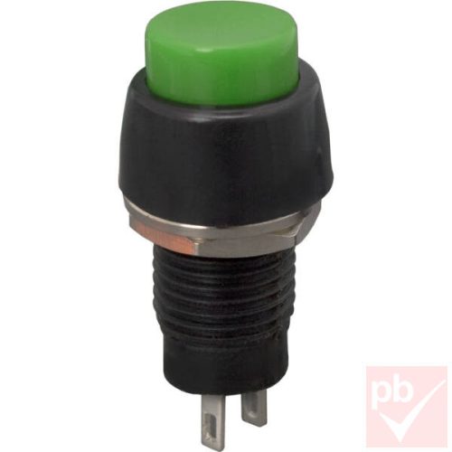 Nyomógomb, kerek, 1 körös, 2 láb, zöld, 250V 2A