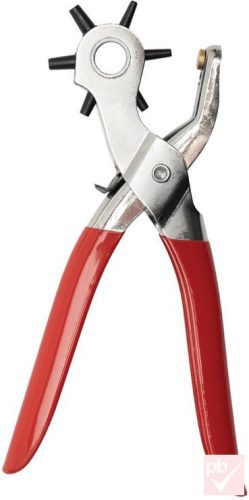 A BLF 6 Bőrlyukasztó fogó alkalmas bőr, textil, vékony karton és puha műanyag felületek lyukasztásához. A fogó acélból készült és puha gumi bevonatú markolattal ellátott a stabil szorítást biztosítva. A felületedzett acél lyukasztócsövek segítségével Ø2; 2,5; 3; 3,5; 4; 4,5 mm nagyságú lyukat tud kiütni. A bőrlyukasztó nyitó rugóval és záró retesszel felszerelt.