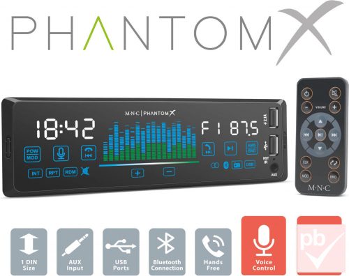 Az MNC fejegységek új generációja megérkezett! Többé nem kell hozzá sem érnie a fejegységhez, elég csak elhúzni előtte a kezét máris válthat például rádió csatornát vagy zeneszámot. A PhantomX teljesen érintésérzékeny előlapot és gesztusvezérlést kapott, így kölcsönözve letisztult, elegáns megjelenést a készüléknek. A zenéinket USB adathordozón is magunkkal vihetjük, de lehetőség van AUX és Bluetooth kapcsolaton keresztül is zenét lejátszani.