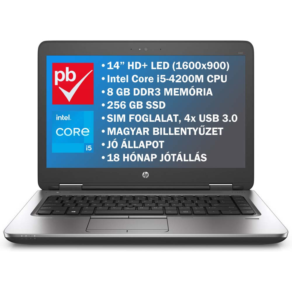 HP ProBook 640 G1 14" felújított prémium használt laptop (Core i5, 8GB, 256GB, HD+ 1600x900)