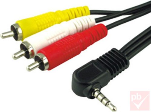 Jack-RCA összekötő kábel (90° 3.5mm 4p. jack dugó - 3x RCA dugó) 1.5m