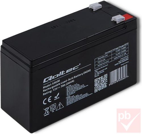 Qoltec gondozásmentes ólom-savas akkumulátor AGM (12V 7Ah) 6.3mm