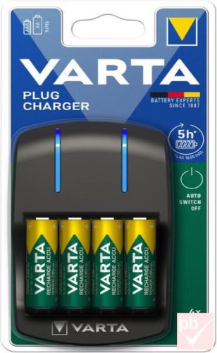 Varta Plug Charger hálózati akkutöltő 4db AA 2100mAh Ni-MH akkuval