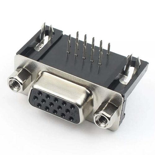 D-SUB csatlakozó, anya, 15 pin, 3 soros, 90°-os, forrasztható, ház nélkül
