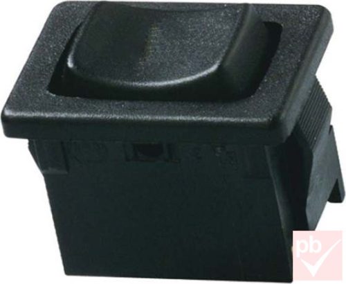 Billenő kapcsoló, szögletes, fekete, világítás nélkül, 2 körös, visszaálló, 12x19mm