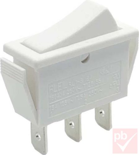 Billenő kapcsoló, szögletes, fehér, világítás nélkül, 1 kör, 2 állású, 3 láb, 30x11mm