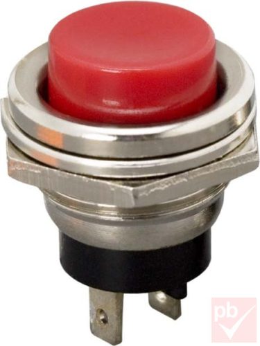 Beépíthető piros, kör alakú nyomógomb. Széles körben elterjed, beépíthető műszaki / elektromos készülékek kezelőpaneljébe. Megbízható típus, fém foglalattal és műanyag gombbal. A kapcsoló alapállapota nyitott, a gomb nyomásakor záródik az áramkör.