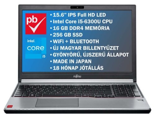 Fujitsu Lifebook E756 15.6" felújított prémium használt laptop (Core-i5, 16GB, 256GB, Full HD)