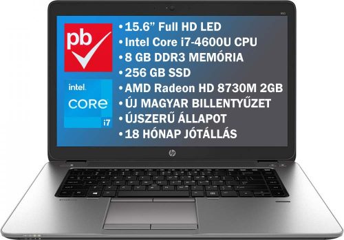 HP EliteBook 850 G1 15.6" felújított prémium használt laptop (Core i7, 8GB, 256GB, Win10)