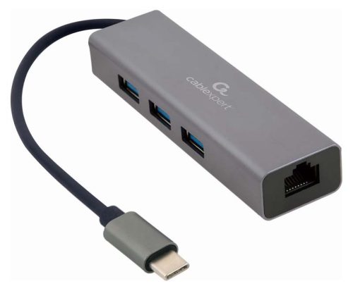 Gembird gigabit USB LAN adapter Type-C dugóval + 3 portos USB 3.1 elosztó (HUB)