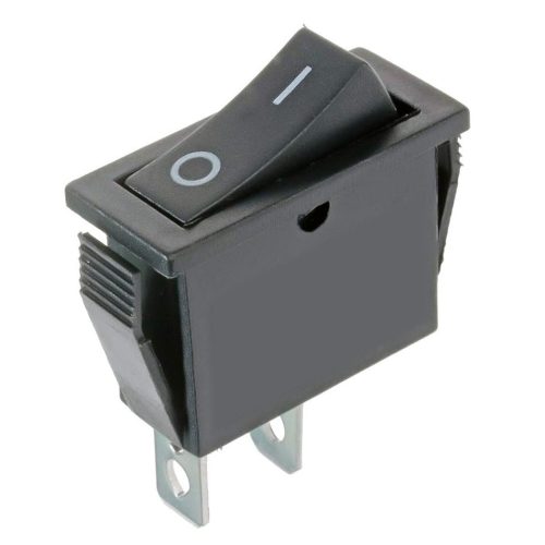 Billenő kapcsoló, szögletes, fekete, világítás nélkül, 1 körös, 2 állású, 2 láb, 11x30