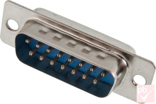 D-SUB csatlakozó, apa, 15 pin, 2 soros, forrasztható, ház nélkül