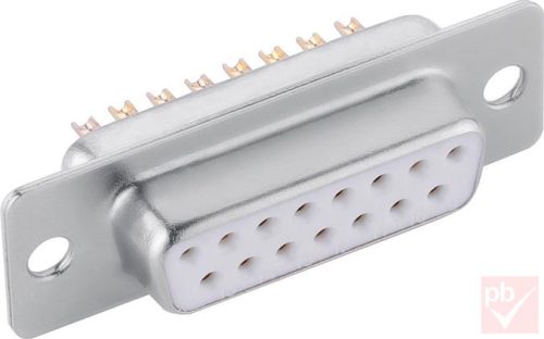 D-SUB csatlakozó, anya, 15 pin, 2 soros, forrasztható, ház nélkül