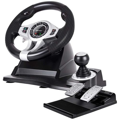 A kormánykerék rendkívül halkan és simán működik. A sebességváltó és a különálló fék- és gázpedálos modul élethűvé varázsolja a vezérlőközpontot, amely gyors reagálást, gyorsítást, valamint kényelmes fékezést és váltást tesz lehetővé. Utazása olyan dinamikus lesz, mintha egy igazi rallyautó volánja mögött ülne. A 270 fokos elfordulási szögek lehetővé teszik, hogy teljesen belevágjon a versenybe. A készülék tapadókorongokkal rögzíthető a talajhoz, ami biztosítja a kormány stabilitását a leghevesebb versenyeken is.