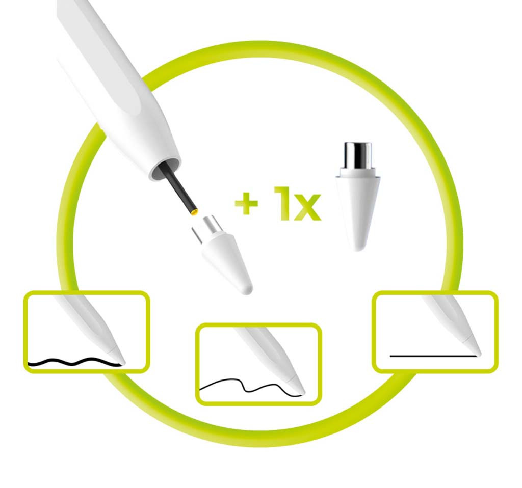 Csomag tartalma: Univerzális aktív Stylus PE1, USB-C <> USB-C töltőkábel, Csere hegy,  Felhasználói kézikönyv