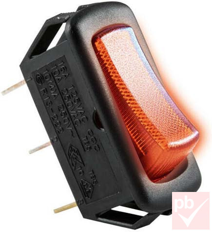 Billenő kapcsoló, szögletes, piros világítás, 1 körös, 2 állású, 3 láb, 31x11mm