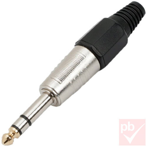 Jack dugó, 6.3mm sztereó, fém ház, erősített kivitel (fekete)