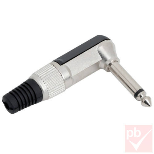 Jack dugó, 6.3mm mono, fém ház, erősített kivitel, 90°