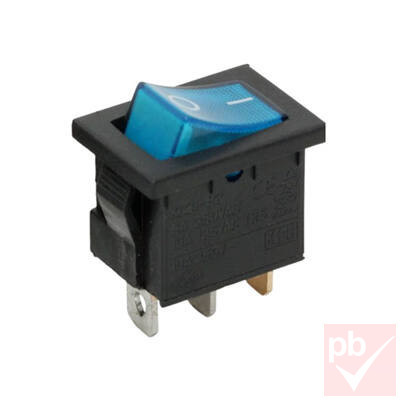 Billenő kapcsoló, szögletes, kék világítással, 1 körös, 2 állású, 21x13mm