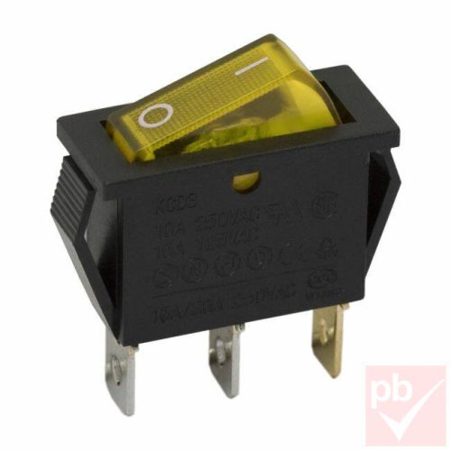 Billenő kapcsoló, szögletes, sárga világítással, 1 körös, 2 állású, 30x10mm