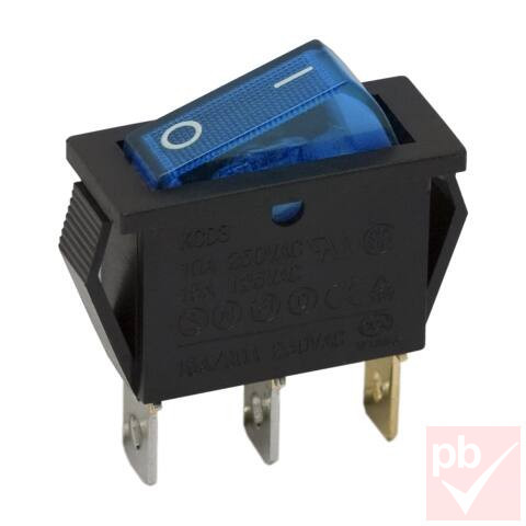Billenő kapcsoló, szögletes, kék világítással, 1 körös, 2 állású, 30x10mm