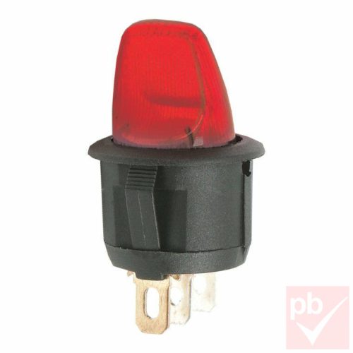 Karos kapcsoló, kerek, piros világítással, 1 körös, 2 állású, átmérő: 19mm