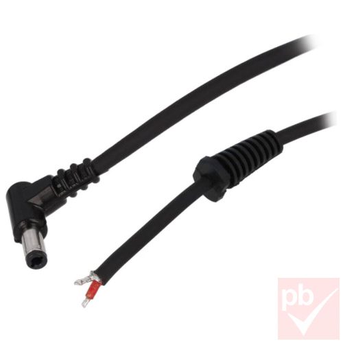 DC kábel, 5.5x2.5mm 90° csatlakozó, árnyékolt, blankolt vég törésgátlóval, 1.5m