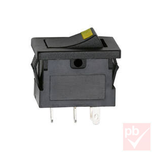 Billenő kapcsoló, szögletes, fekete, sárga LED, 1 körös, 2 állású, 12x19mm